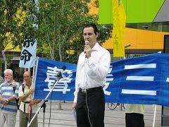 Le premier locuteur au rassemblement était John Lee, président de l'Association de la Chine Libre du Queensland. M. Lee a parlé de comment davantage de personnes ont vu la mauvaise nature du PCC et ils ont démissionné. Il a précisé qu’en plus de la persécution de ses compatriotes, le PCC avait prolongé sa mauvaise influence à l'étranger – y compris placer un grand nombre d'agents secrets à l'étranger et exporter des jouets et de la nourriture toxiques. Lee a demandé aux chinois de se réveiller : « J’espère que dans cette nouvelle année, vous pourrez participer à propager les Neuf Commentaires sur le Parti communiste et à aider d'autres personnes à démissionner du PCC. Ceci aide à désagréger le PCC, à dissiper la culture du PCC pervers, à reconstruire les valeurs chinoises traditionnelles et à promouvoir la culture divine chinoise ».