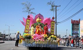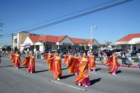 La communauté vietnamienne à Westminster, Comté d'Orange en Californie a tenu un défilé pour marquer le Nouvel An vietnamien le 9 février 2008. C'était une journée ensoleillée. Le groupe du Falun Gong, composé d'un char, de tambours de ceinture et d'une troupe de danseuses, a apporté la beauté de Dafa à la population vietnamienne. Tout au long du défilé, les spectateurs des deux côtés de la route ont réservé un accueil chaleureux aux pratiquants avec des applaudissements continuels.