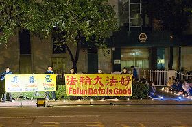 Les pratiquants du Falun Gong, venus de nombreux pays, ont organisé une veillée aux chandelles en face de l’Ambassade Chinoise de Los Angeles.