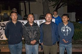 Des militants démocrates Chinois sont venus volontairement pour participer à la veillée et sont disposés à s’impliquer, donnant leurs noms réels (de gauche à droite: Jiang Fuqun, Zheng Cunzhu, Peter Zhou et Yin Yong)