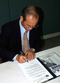 Dr. Lee Ming-Jen, Président de l’Université Nationale de Chiayi, signant la lettre dénonçant la persécution à l’encontre des pratiquants du Falun Gong |