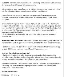 services culturels de Linkoping, a reçu un appel de l'Ambassade chinoise