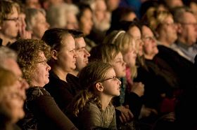 Le public à la Haye a réagi avec des applaudissements enthousiastes à la merveilleuse représentation de la troupe des Arts Divins en tournée. |
