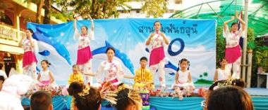 Le jour suivant, les pratiquant sont allés à l'école Suneepitaya et ont présenté les merveilleuses prestations aux professeurs et aux étudiants pour leur cérémonie de diplômes. Les pratiquants leur ont aussi enseigné la chanson "Falun Dafa Hao," que professeurs et étudiants ont chanté ensemble à la fin de la cérémonie .