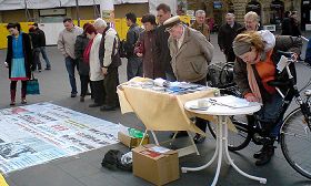 Le 23 février 2008, la Halle Rathausplatz grouillait de monde. Lisant l'information sur les panneaux mis en place par les pratiquants de Falun Dafa, les gens ont été choqués et indignés en apprenant les tortures infligées aux pratiquants de Falun Gong par le Parti communiste chinois (PCC).