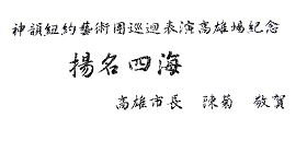 Le Maire Chen Chu de Kaohsing félicite en particulier la troupe des Arts divins pour sa célébrité « d’une grande portée ».