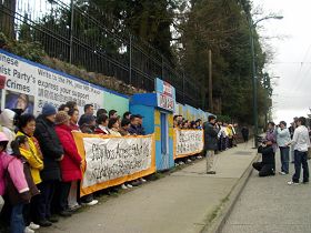 Le matin du 15 mars 2008, les pratiquants de Falun Gong à Vancouver au Canada ont tenu un rassemblement et une conférence de presse devant le consulat chinois. Ils ont manifesté contre les arrestations en masse des pratiquants de Falun Gong à Pékin par le parti communiste chinois (PCC) à l'approche des Jeux Olympiques et ils ont demandé fermement à la communauté internationale d'exprimer son inquiétude.