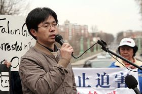 Des douzaines de pratiquants de la grande région de Washington DC se sont rassemblés devant l’ambassade de Chine à midi le 18 mars pour protester contre les atrocités du PCC. Le PCC a récemment émis un décret secret du nom de « Commission politique et judiciaire centrale. » Le décret ordonne de faire discrètement des arrestations à grande échelle, et du porte-à–porte à la recherche des pratiquants de Falun Gong à travers la Chine avant les Olympiques, ce qui entraîne de nombreux cas de décès en raison de la torture.