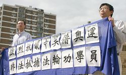 Pendant la manifestation des pratiquants de Falun Gong, un autre groupe de personnes est également venu protester contre le PCC et a tenu des banderoles avec les mots, « Liberté d'expression, ou pas de Jeux Olympiques », et, « Arrêtez l’oppression ». Une des personnes a dit qu'ils étaient au courant de la persécution se produisant en Chine. La manifestation a attiré l'attention des passants et des automobilistes.