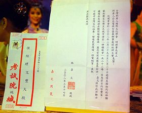 Lettre de félicitations du président du Examination Yuan, M. Yao Chia-Wen