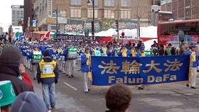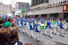 C’était la première fois que la fanfare jouait dans ce défilé. Dans les précédents défilés de la St-Patrick les pratiquants présentaient les exercices sur un char, jouaient des tambourins de la ceinture et présentaient les danses traditionnelles chinoises. Les organisateurs du défilé ont été très impressionnés par le groupe du Falun Gong. Ils étaient contents que la fanfare ait joué dans le défilé de cette année.