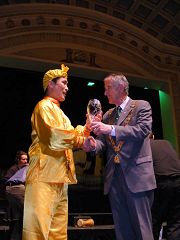 Le Maire de la ville de Cork, le Conseiller Donal J. Counihan a présenté le trophée au groupe du Falun Gong.
