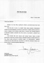 Me basant sur votre lettre et comprenant mieux les principes du Falun Gong, comment le comportement des gens devrait être basé sur les principes d'“Authenticité, Compassion, Tolérance”, j'ai décidé d'accorder mon soutien. Propager la croyance en “Authenticité, Compassion, Tolérance” et ces principes aura un impact immense sur la compréhension et l'amitié entre communautés et pays et induira le respect et la coopération.