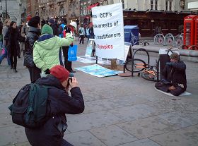Comme à l'accoutumée, les pratiquants ont déroulé des banderoles et mis en place des panneaux d'information. Certains ont fait la démonstration des cinq exercices au son d'une musique chinoise de style traditionnel tandis que d'autres distribuaient une information et recueillaient des signatures parmi les passants. L'importance de l'affichage et les photos, plus les banderoles où les gens pouvaient lire "Proester fermement contre les arrestations massives de pratiquants de Falun Gong à l'approche des Olympiques" ont amené beaucoup de gens à s'arrêter et à poser des questions. Nombre d'entre eux ont aussi pris l'information à disposition. L'un après l'autre ils sont signé le formulaire de pétition pour condamner les atrocités commises par le PCC et soutenir l'arrêt de la persécution.