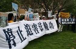 À midi, le 25 avril 2008, des pratiquants de Falun Gong se sont rassemblés devant l’ambassade de Chine à Washington pour commémorer le neuvième anniversaire de l’appel du 25 avril et la mort de milliers de compagnons pratiquants qui ont été torturés à mort par le Parti communiste chinois (PCC). Ils ont fait appel à la justice et la conscience pour que cesse la persécution du Falun Gong.