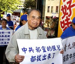 Après le rassemblement, les participants ont défilé. Le défilé est allé dans les rues principales, attirant l’attention de nombreux passants. Certains d’entre eux ont prit des photos de la manifestation, certains ont demandé à en savoir plus, et certains se sont mis à lire les dépliants révélant les violations des droits de l’homme du PCC dès qu’ils les ont pris. Certains badauds Chinois sont allés dire aux manifestants « Très bien ! Vous faites de mieux en mieux. »