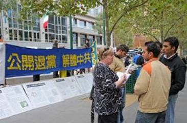 Le 3 mai, un rassemblement pour « Soutenir les 36 millions de démissions au PCC » a été organisé au City Square, à Melbourne. Les participants ont condamné le Parti communiste chinois pour les arrestations des pratiquants du Falun Gong avant la tenue des Olympiques et ont demandé aux gens de reconnaître la nature perverse du PCC et de démissionner du parti.