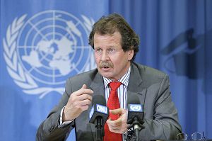 Mr Manfred Nowak, le rapporteur spécial des Nations Unies sur la question de la torture, lors d'une réunion tenue aux Nations Unies en mars 2008. À la fin de 2005, il s’est rendu en Chine en commission d’enquête sur la question de la torture. Il est le premier officiel des Nations Unies à s’être rendu en Chine pour étudier la question de la torture. Il a précisé que les cas de torture des pratiquants de Falun Gong comptent pour 66 pour cent de la section sur la Chine dans le rapport des Nations Unies.