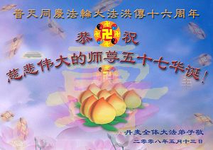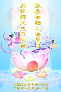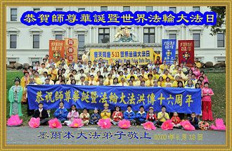 Les pratiquants de Taiwan souhaitent respectueusement un Joyeux Anniversaire au Vénérable Maître et célèbrent le 16 iem anniversaire de l’introduction du Falun Dafa au public!