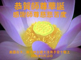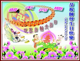 Les pratiquants du site de clarification de la vérité de Huangdaxian a Hong Kong souhaitent respectueusement un Joyeux Anniversaire au Vénérable et bienveillant Maître!