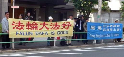Le 6 Mai 2008, le président chinois Hu Jintao s'est rendu au Japon. Les pratiquants locaux ont organisé des activités devant le parlement et l'ambassade chinoise pour demander la fin de la persécution du Falun Gong et pour amener les malfaiteurs principaux, Jiang Zemin, Luo Gan, Liu Jing et Zhou Yongkang, devant la justice.