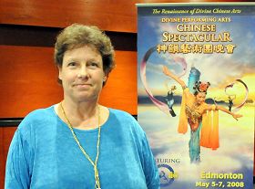 Edmonton – Sandy Helland, chauffeur de camion qui habite à Whitehorse, Yukon, a pris spécialement un vol vers Edmonton pour voir le Spectacle chinois sur le conseil de son acupuncteur. Elle est venue pour voir la représentation de la soirée du lundi à l’auditorium Jubilee d'Edmonton et encore le mardi. Elle l'a vue une troisième fois la soirée du mercredi, la dernière représentation à Edmonton.