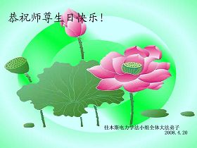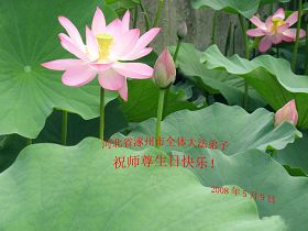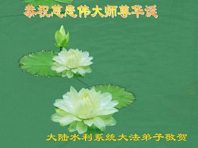 Les pratiquants de Falun Dafa du système des eaux en Chine souhaitent avec respect au Maître vénéré un joyeux anniversaire et célèbrent la 9ème journée mondiale de Falun Dafa !
