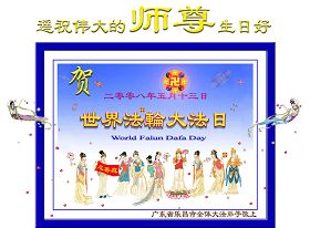 Les pratiquants de Falun Dafa du système d’éducation de la province du Shandong souhaitent avec respect au Maître vénéré un joyeux anniversaire et célèbrent la 9ème journée mondiale de Falun Dafa !