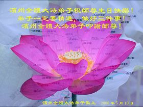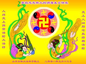 Les pratiquants de Falun Dafa de la province du Shangdong souhaitent avec respect au Maître vénéré un joyeux anniversaire et célèbrent la 9ème journée mondiale de Falun Dafa !