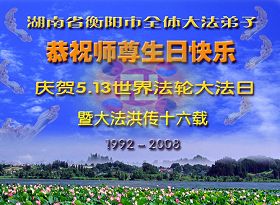 Les pratiquants de Falun Dafa de Hengyang, province du Hunan, souhaitent avec respect au Maître vénéré un joyeux anniversaire et célèbrent la 9ème journée mondiale de Falun Dafa !