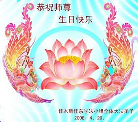 Les pratiquants de Falun Dafa des puits de pétrole de Dagang, Tianjin, souhaitent avec respect au Maître vénéré un joyeux anniversaire et célèbrent la 9ème journée mondiale de Falun Dafa !