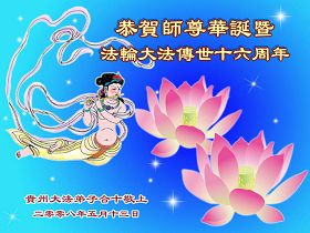 Les pratiquants des villes, des provinces et des comtés suivants souhaitent tous respectueusement au vénérable Maître un Joyeux anniversaire et célèbrent la 9e Journée mondiale du Falun Dafa et le 16e anniversaire de la présentation du Falun Dafa au public. Des pratiquants ont également déclaré qu’il feront bien les trois choses et sauveront les êtres prédestinés, s’acquitteront de leurs vœux historiques et seront à la hauteur du salut ardu et plein de compassion du Maître.