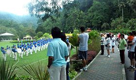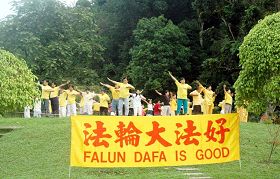 Le 13 mai 2008 marque la neuvième Journée mondiale du Falun Dafa et le seizième anniversaire de la présentation du Falun Dafa. Le 11 mai, les pratiquants de Falun Gong de Malaisie ont célébré cette journée spéciale et l’anniversaire Maître Li, le fondateur du Falun Gong, dans le Jardin botanique de Penang. La fanfare de la Terre Divine de Malaisie qui se produisait pour la première fois à l'occasion de cette célébration, a interprété sa musique du Falun Dafa, ce qui a attiré de nombreuses personnes.