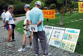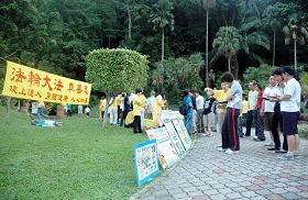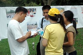 Les pratiquants ont fait la présentation des exercices du Falun Gong, présenté une exposition de photos « Le voyage du Falun Dafa » et recueilli des signatures. De nombreuses personnes ont montré un grand intérêt à apprendre le Falun Gong. Ils ont signé pour soutenir la campagne anti-persécution après avoir entendu parler de la persécution du Falun Gong en Chine.