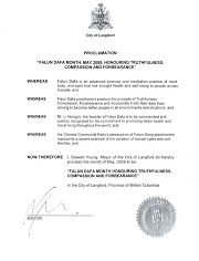Par conséquent, Stewart Young, maire de la ville de Langford proclame donc ici le mois de mai 2008 comme étant : « Le mois du Falun Dafa honorant l'Authenticité, la Bienveillance et la Patience »; dans la ville de Langford, province de la Colombie-Britannique.