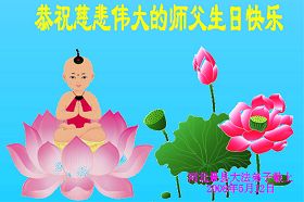 Les pratiquants en Chine souhaitent respectueusement au Maître grandiose et compatissant un joyeux anniversaire!