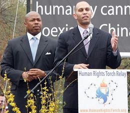 Parmi les nombreux militants qui ont accueilli le Relais de la flamme à Central Park dans la matinée, il y avait le sénateur de l’état de New York Eric Adams. Il a dit à la foule que le PCC a toujours persécuté des civils innocents et il a dit que les américains ne peuvent fermer les yeux sur cette persécution brutale.