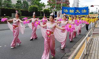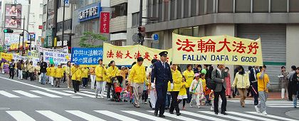 Le 13 mai 2008, les pratiquants du Falun Dafa de l’est du Japon ont défilé à Tokyo pour fêter le 9ème anniversaire de la Journée Mondiale de Falun Dafa, promouvoir Falun Dafa et envoyer leurs meilleurs veux à M. Li Hongzhi.