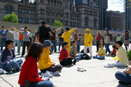 Le 13 mai 2008, les pratiquants de Falun Dafa ont organisé la célébration de la Journée Mondiale du Falun Dafa au Parc Nathan Phillips devant l'hôtel de ville de Toronto. Beaucoup d'invités sont venus offrir leurs messages de félicitations. Les pratiquants ont chanté et dansé afin de montrer leur reconnaissance pour les 16 années d'efforts du Maître qui a aidé les gens à prendre le chemin de retour à leur être véritable.