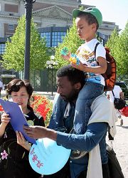 Le musicien Sam Paris, qui a vu la dernière représentation du Chinese Spectacular de la Divine Performing Arts le 3 avril, a participé aux activités avec son fils âgé de quatre ans.