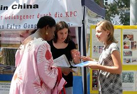 Les gens demandaient constamment: “Pourquoi le Parti communiste chinois (PCC) persécute-t-il le Falun Gong ? Les pratiquants répondaient : "Le Falun Gong apprend aux gens à vivre selon les principes de Vérité, Compassion et Tolérance. Mais le PCC, par le mensonge et la violence provoque la haine entre les gens afin de les contrôler et contrôler même leurs pensées. Il s'inquiète que si les gens peuvent par eux même déterminer le bien du mal, ce qui est bon et ne l’est pas, il n’arrive plus à contrôler le peuple et ses pensées, aussi il a lancé la persécution du Falun Gong." Les pratiquants ont aussi recommandé aux gens de lire l’éditorial d’Epoch Times Neuf commentaires sur Parti communiste qui décrit de façon systématique la nature perverse du PCC.