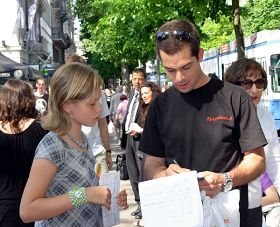 Maria et sa fille, venues en visite d’Autriche, ont brièvement discuté avec les pratiquants. Maria a immédiatement signé la pétition contre la persécution. Elle a dit : "Je pense que soutenir la liberté de croyance des gens est une bonne chose. J’ai entendu parler du Falun Gong et j’admire l’esprit de ces personnes. Il n’y a aucune raison de les persécuter. Au contraire on devrait les soutenir. "