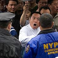 Une femme qui pratique le Falun Gong, Judy Chen, 48 ans, de Flushing, été assaillie lundi par une femme chinoise dans la meute procommuniste. Chen avait essayé de prendre la femme en photo après qu’elle ait admonesté et insulté Chen, qui tient régulièrement le 'stand Quitter le Parti', pour voir sa caméra attrapée et écrasée. L’assaillante a commencé à gifler Chen au visage et à l’agripper (photo). D’après Chen elle lui a dit “J’ai bien regardé ton visage… et je vais te tuer.” Chen est une citoyenne naturalisée et a deux fils, tous les deux dans l’armée américaine et servant actuellement en Irak.