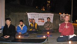 Les veillées aux chandelles ont commémoré tous les pratiquants de Falun Gong qui ont été persécutés à mort par le régime communiste chinois au cours des neuf années passées. Des photos ont exposé les atrocités commises par le régime dans sa persécution brutale du Falun Gong. Les pratiquants espéraient aussi que les personnels travaillant à l’ambassade chinoise et au consulat apprendraient la vérité et ne seraient pas complices de la persécution de personnes innocentes.