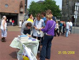 Groningen est une ville que visitent de nombreux touristes, venant en particulier d'Allemagne. la manifestation s'opposant à la persécution du Falun Gong en Chine a été chaleureusement accueillie par la population de Groningen, ainsi que par les touristes visitant la ville. Des imprimés et des journaux informant à propos du Falun Gong et des neuf ans de persécution des pratiquants de Falun Gong en chine ont été distribués aux passants. Des Chinois vivant à Groningen, se sont retirés du Parti communiste chinois (PCC) et de ses organisations affiliées, après avoir appris les faits de la persécution.