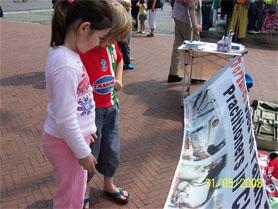 À un moment, un jeune garçon est passé sur les lieux de la manifestation sur son vélo. Après avoir vu une bannière avec des photos de pratiquants de Falun Gong qui ont été persécutés en Chine, il s'est approché pour mieux regarder. Une jeune fille à peu près du même âge est venu lui expliquait ce qui était dépeint sur les posters. "Je vais poser ma bicyclette, je reviens" a- t-il dit. Puis il est revenu poser des questions à laquelle on ne s'attendrait pas venant d’un jeune garçon. Ses commentaires étaient incisifs, intelligents et réfléchis. Puis il est allé signer la pétition. Son père l’a trouvé posté devant la banderole. En entendant dire que son fils était très mûr, il a dit que c'est ce que beaucoup de gens lui disaient. Le père lui-même était professeur de grec, et a pu lire l'imprimé sur le Falun Gong en grec, sur la table.