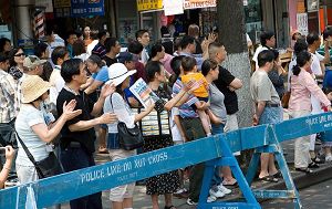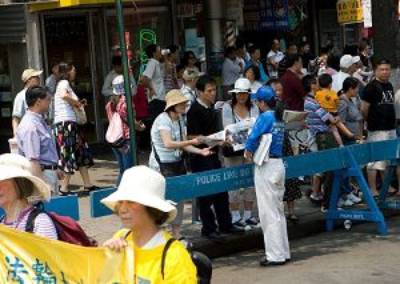 En voyant une pratiquante distribuer des dépliants sous le soleil chaud, un immigré chinois a été très touché et lui a acheté une boisson. Plus tard, il a dit au journaliste qu'il savait que la pratique était bonne et la persécution mauvaise. Il a dit : « Je ne suis pas un pratiquant, cependant, je connais le Falun Gong. Je sais que le Falun Gong est bon et le PCC ne devrait pas persécuter ce groupe. » Un homme qui venait d'arriver de Chine continentale a dit, « Je vois la compassion des pratiquants et je suis très touché. »
