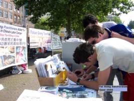 De nombreux touristes visitant Amsterdam connaissaient déjà le Falun Gong et étaient au courant de la persécution en Chine, beaucoup ont dit avoir vu des manifestations dans leurs propres pays. Un touriste de Lima a dit après avoir vu les panneaux avec des photos sur la persécution qu'il en avait déjà entendu parler dans son pays. Il a pris des imprimés pour les donner à ses amis. Des gens d'Allemagne, de Pologne, de Roumanie, d'Inde, d'Amérique, de France, d'Espagne et de nombreux autres pays savaient déjà comment les pratiquants de Falun Gong sont persécutés.