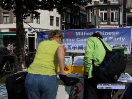 Le samedi 7 juin, une activité "Démissionnez du Parti" a eu lieu au "Nieuwemarkt," à côté du Chinatown. Une information sur le phénomène de démissions et la persécution du Falun Gong a été distribuée et volontiers acceptée par les Chinois et les non Chinois. Une opportunité était offerte aux Chinois de quitter le Parti communiste sur les lieux de l'activité.