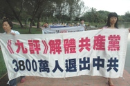 Le rassemblement de soutien aux 38 millions de Chinois qui ont quitté le PCC et ses organisations affiliées a débuté dans l’après-midi. Ceux qui y ont assisté ont d’abord observé une minute de silence pour les victimes du tremblement de terre du 12 mai, à Sichuan.